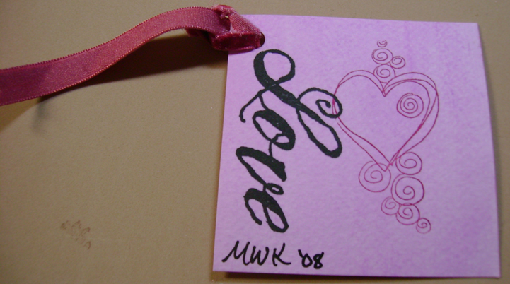I love this Love stamp I used on the back and the doodly heart is a favorite too. I used watercolor crayon on watercolor paper and a makeup sponge with water for the backgrounds. What a relaxed, fun swap!